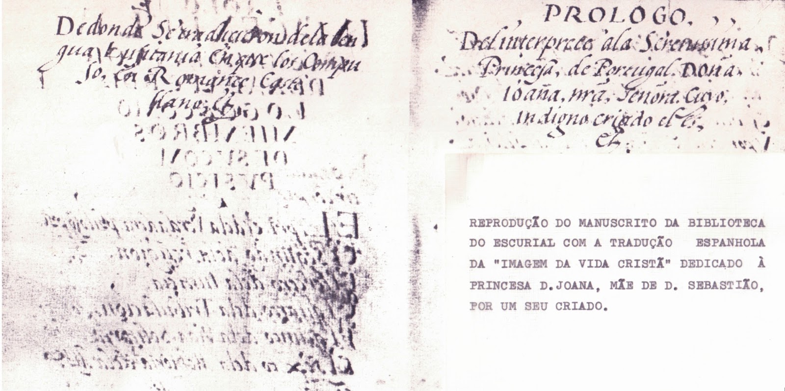 Reprodução do manuscrito da Biblioteca do Escurial com a tradução espanhola da "Imagem da Vida Cristã" dedicado à Princesa D. Joana, mãe de D. Sebastião, por um seu criado. Coimbra 1565 |