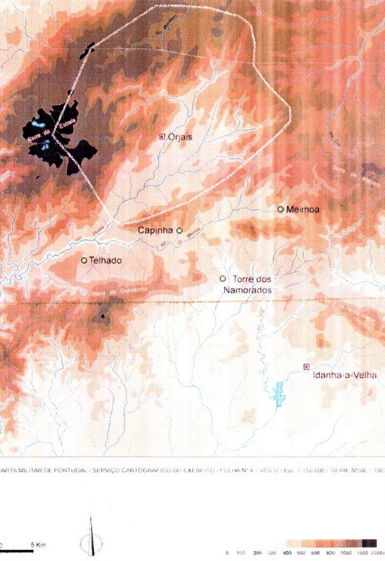As cartas militares e o perfil abaixo apresentados (1) pretendem localizar Orjais e integrar neste espaço o templo romano de Nossa Senhora das Cabeças e a capela de Nossa Senhora das Luzes, nomeada no nosso documento.